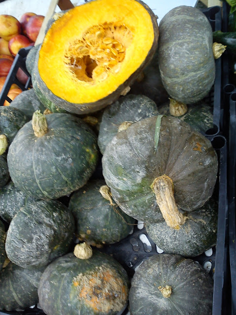 Questa mattina al mercato del ridente paesino veneto che mi vede residente,il banco della frutta e verdura di un'azienda agricola del posto era un tripudio d'autunno.